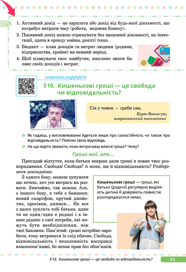 Кожному з вас колись доведеться заробляти, витрачати і берегти кошти. І що раніше ми навчимося робити це розумно, то більше спокою та задоволення матимемо в майбутньому. |