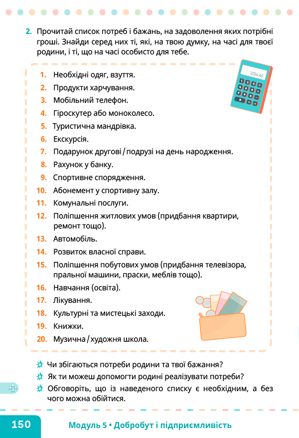 - аналізує необхідність ресурсів для задоволення потреб і бажань, доходи і витрати;