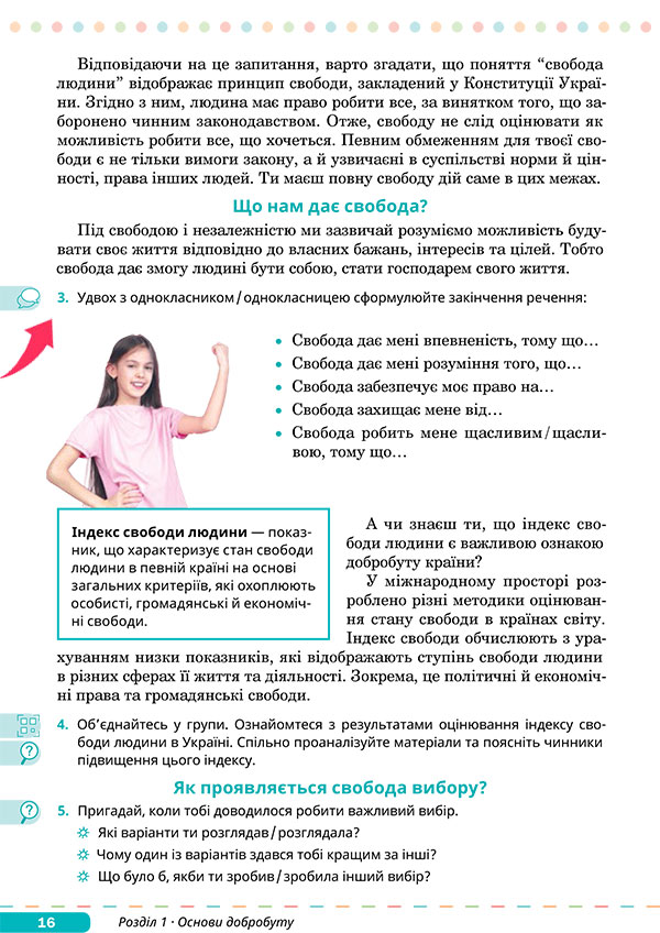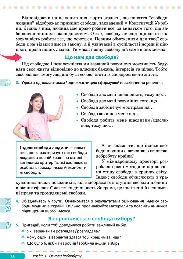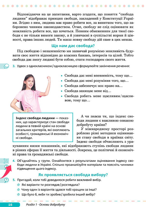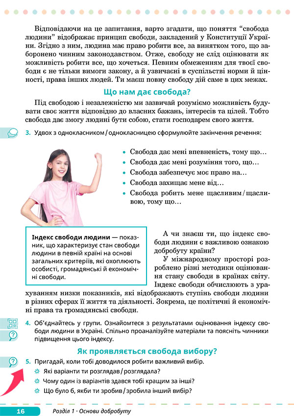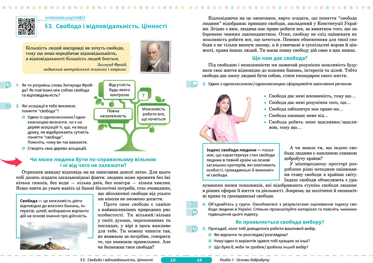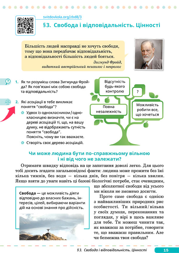 Чому свобода важлива? — Прочитайте текст на сторінках 15–16 підручника. ![]() ![]() |