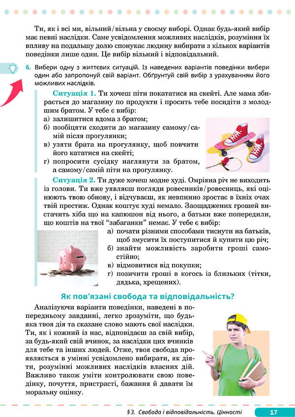 - наводить приклади ситуацій, у яких людина робить вільний вибір;