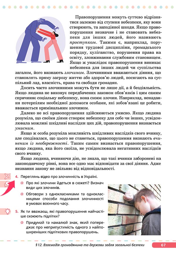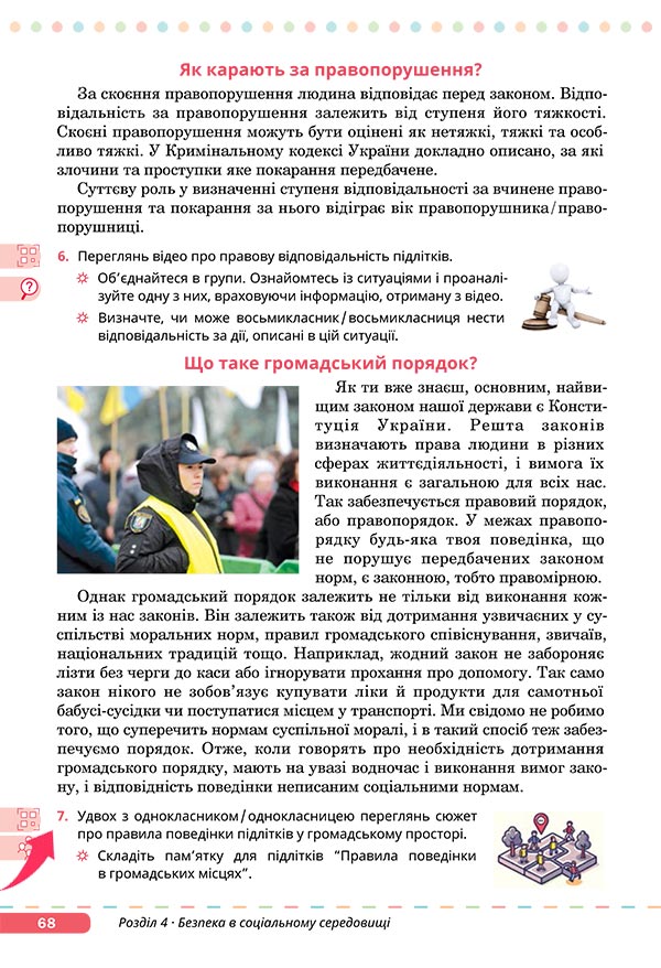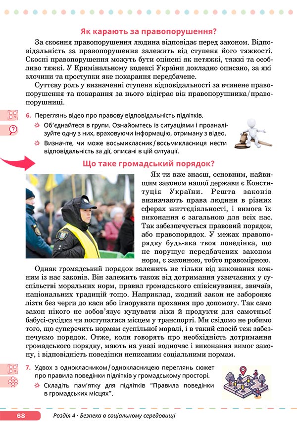 Насамкінець варто дати завдання для саморефлексії: “Які дії мої чи мого оточення можуть межувати з правопорушенням? Де пролягає межа між дрібним хуліганством і правопорушенням?”.