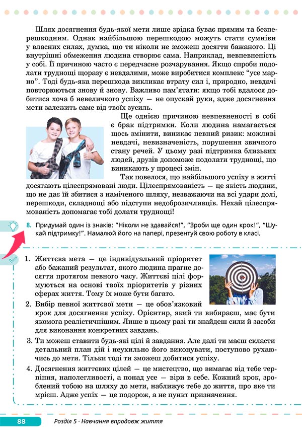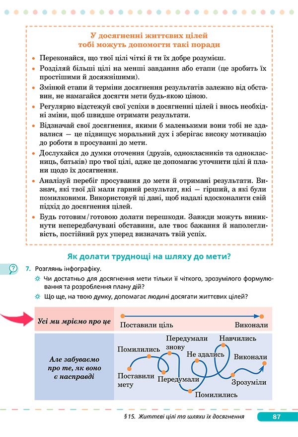 — Прочитайте про перешкоди на шляху до мети на сторінці 88 підручника.