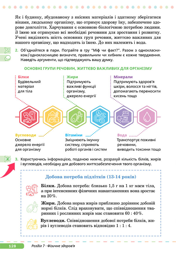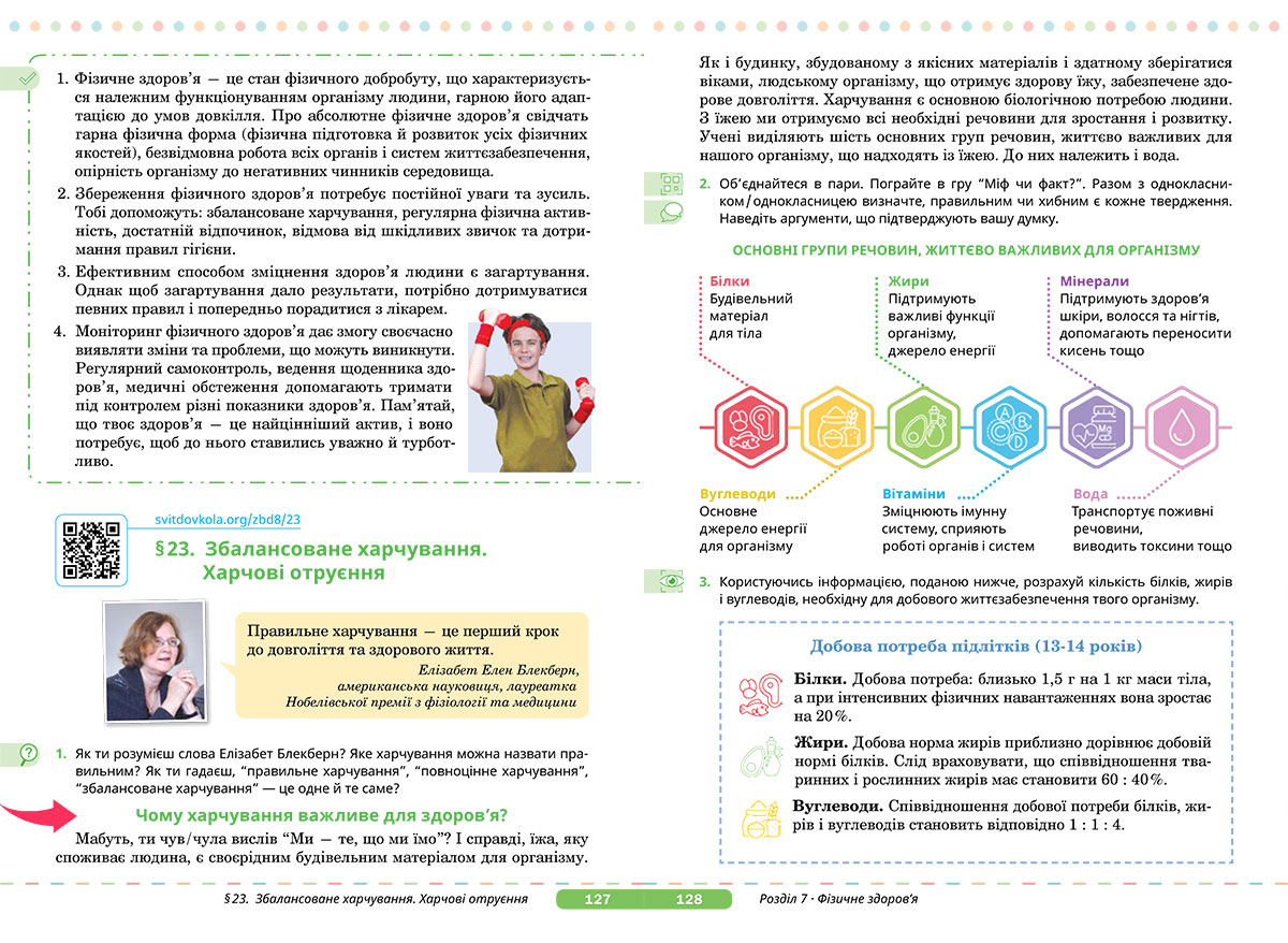 - Розглянути склад і принципи збалансованого харчування, добову потребу організму в основних поживних речовинах.