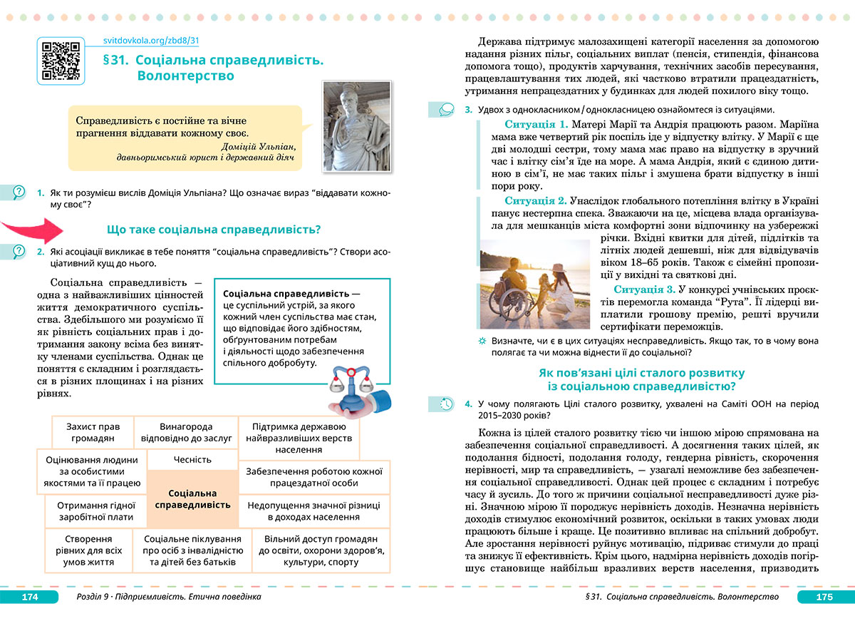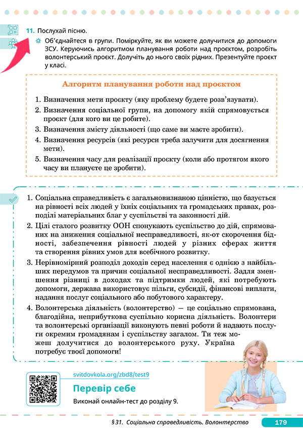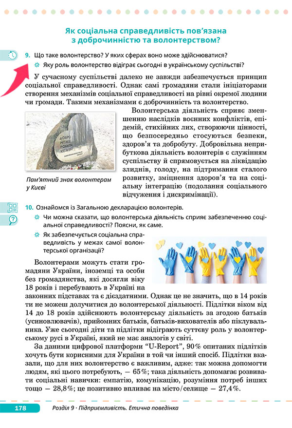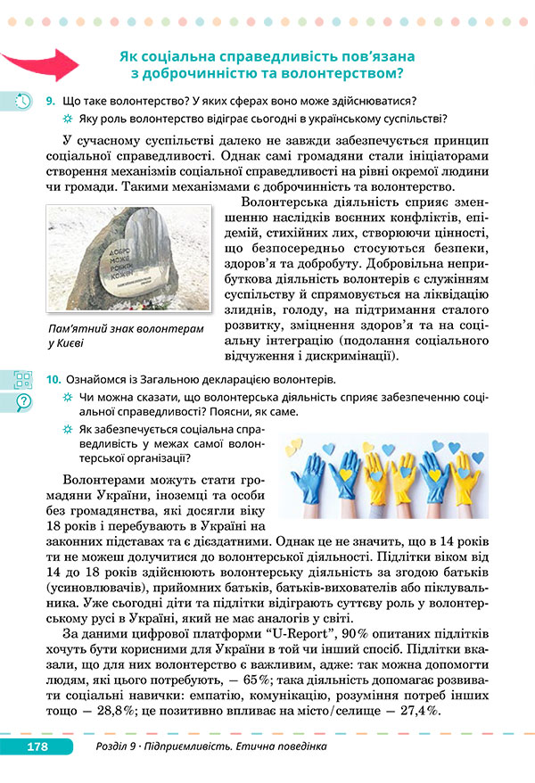 Соціальна справедливість і волонтерство — Прочитайте текст на сторінці 178 підручника.