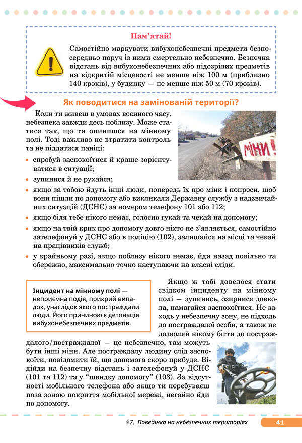 - Повідомити дорослих (батьків, вчителя, рятувальників) про знайдену небезпечну територію.