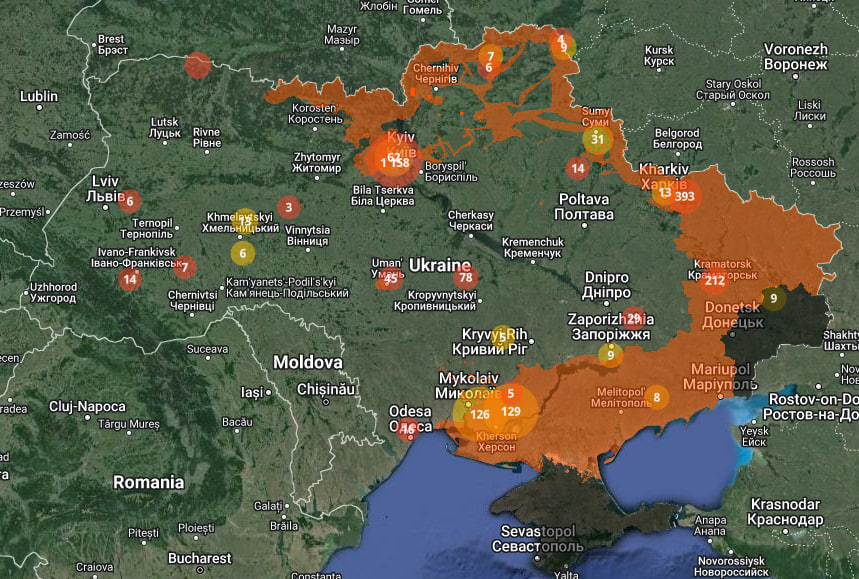 Мапа територій України, які можуть бути забруднені вибухонебезпечними предметами
